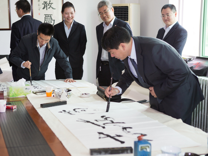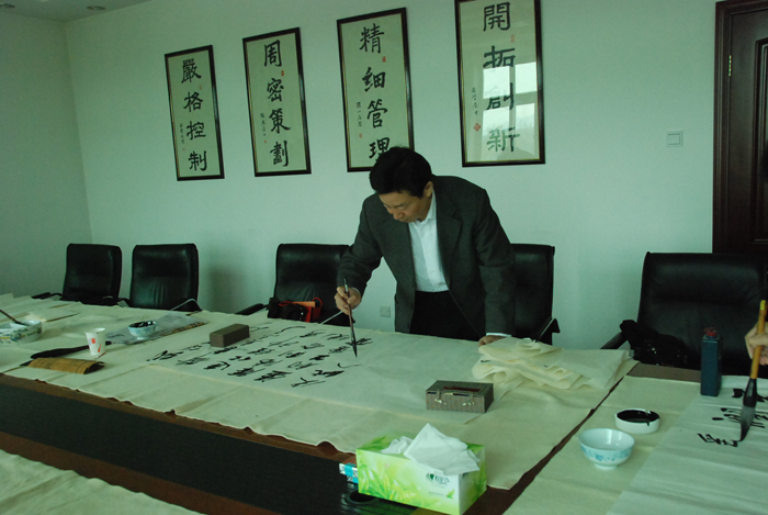 为弘扬传统文化,丰富员工业余生活,5月6日上午,米兰体育最新网页登录有限公司举办了首届书画艺术学习交流活动。本次活动邀请了中国书法家协会会员孟云飞博士、中国书法家协会理事张铜彦先生、中国书法家协会编辑出版委员会副主任王荣生教授、人民艺术家协会理事于瑛先生等国内知名书画大师,各位书画大师在活动现场进行了艺术创作表演,挥毫泼墨,交流技艺,为米兰体育最新网页登录有限公司留下了数十副墨宝,还对部分员工的书画作品进行了悉心指导。公司员工现场欣赏了书画大师的艺术创作,并聆听了有关书画艺术鉴赏知识的介绍,部分员工还在活动现场进行创作,听取书画大师的讲解示范和点评。